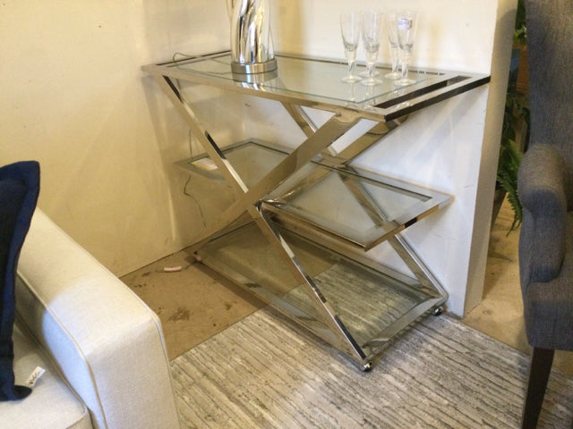 46x33x18 chrome w/ glass inset shelves 3-tier on wheels, retail $1800