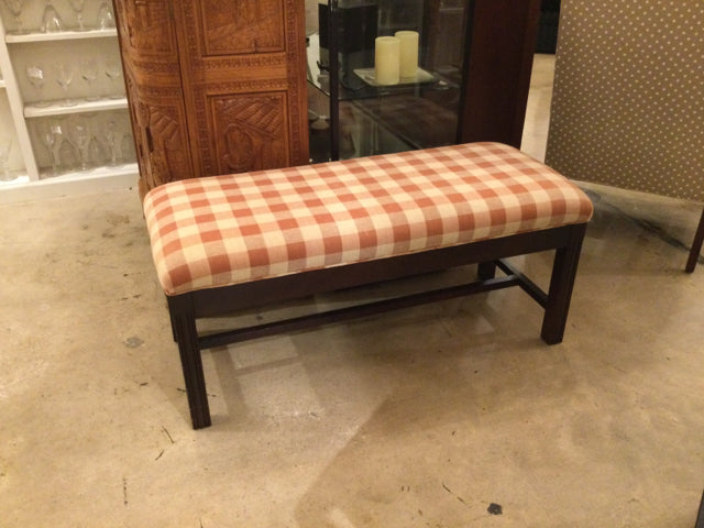19x43 rust and cream plaid on dark wood frame.