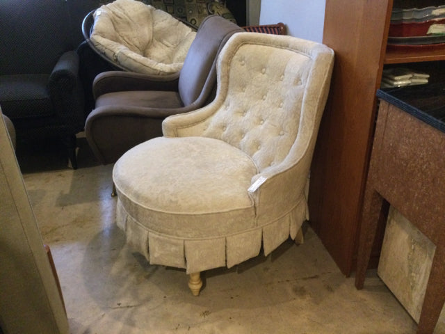 30"w curved cream cut velvet w/ tufted back and skirt.