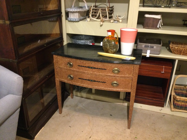 19x36x32 black marble faux finish top on brown painted base w/ 2 drawers and tapered legs