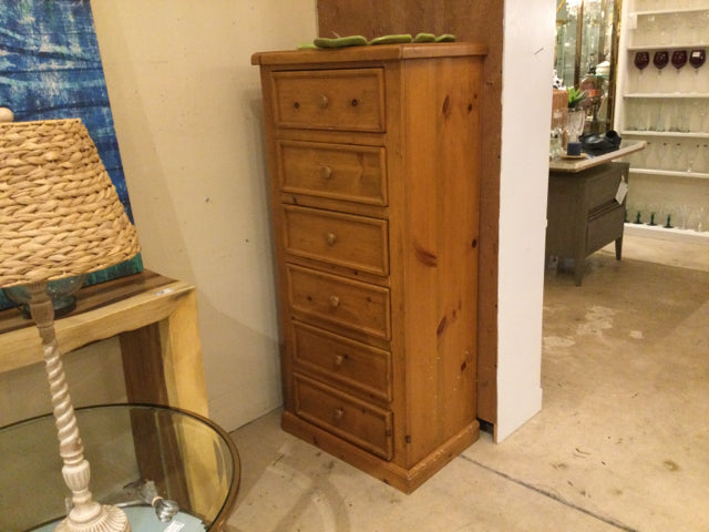 24x17x55 pine 6 drawer lingerie, finish and corners AS IS