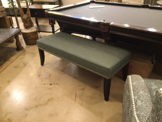 21x53 light blue w/ nailheads on tapered legs, corner as is.