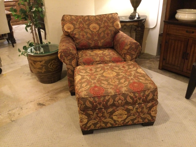 41"w gold and burgundy paisley chenille w/ matching OTTOMAN.